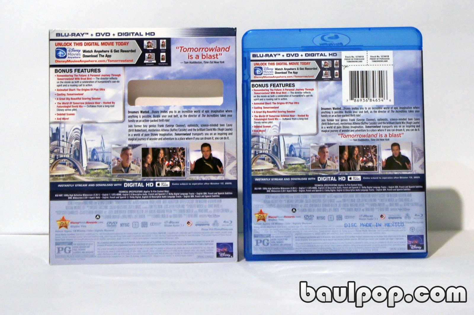Galería de fotos del blu-ray de la película Tomorrowland, edición importada que es blu-ray más copia digital.